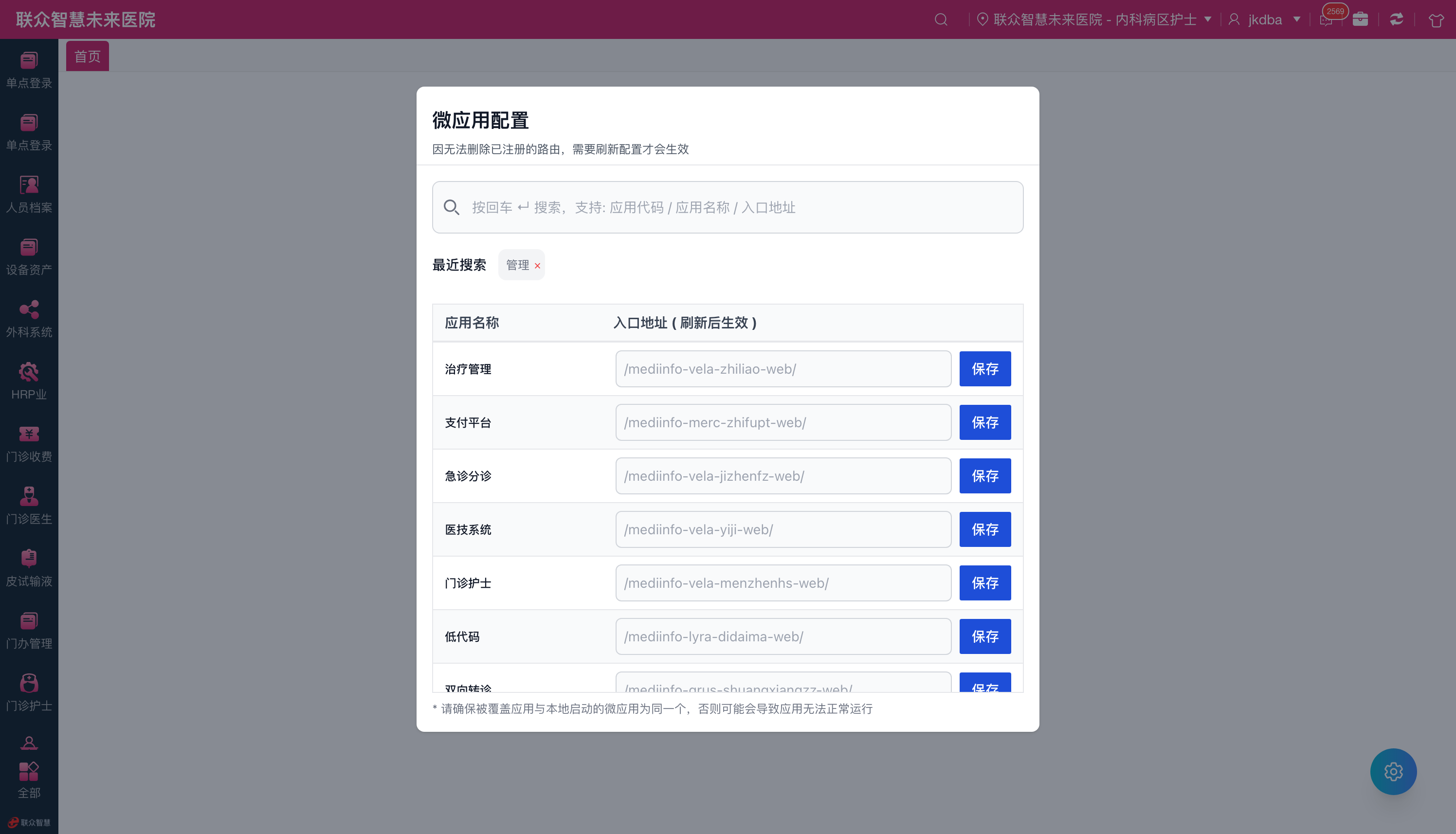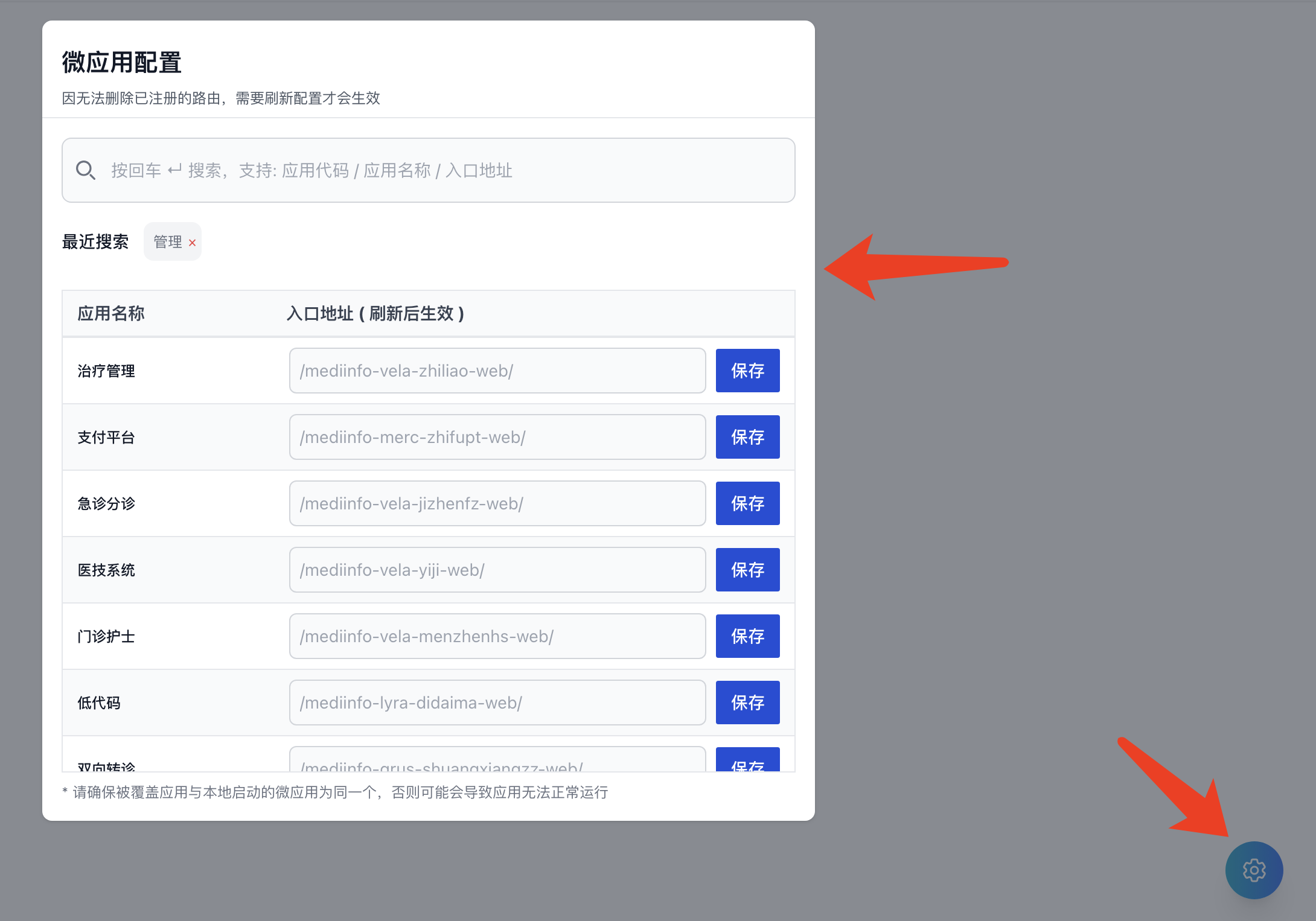 然后填入本地微应用的启动地址,点击保存或按下回车。如果想恢复,只要删除输入框的内容再次保存即可。