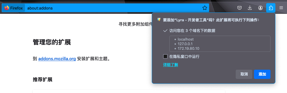 ➔ 在浏览器中打开 - about:addons ➔ 下载拓展(无需解压) ➔ 将拓展直接拖到页面中